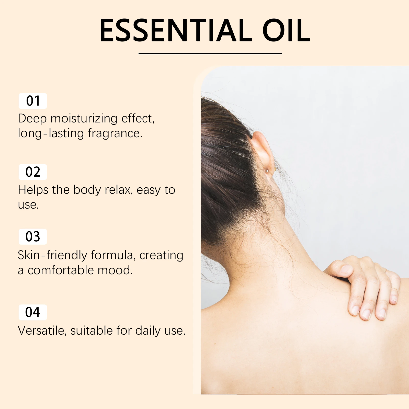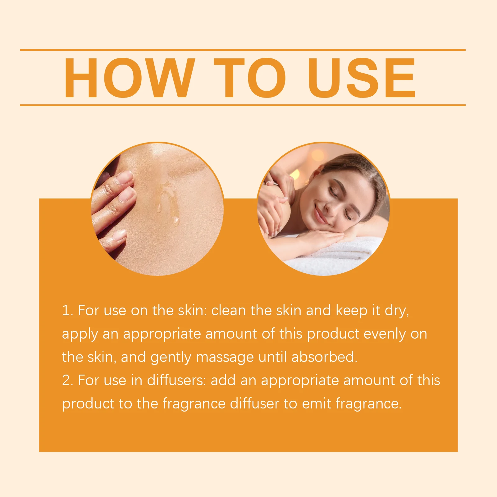 1.للاستخدام على البشرة: نظفي البشرة وحافظي عليها جافة، ضعي كمية مناسبة من هذا المنتج بالتساوي على البشرة، ودلكي بلطف حتى تمتصه.
