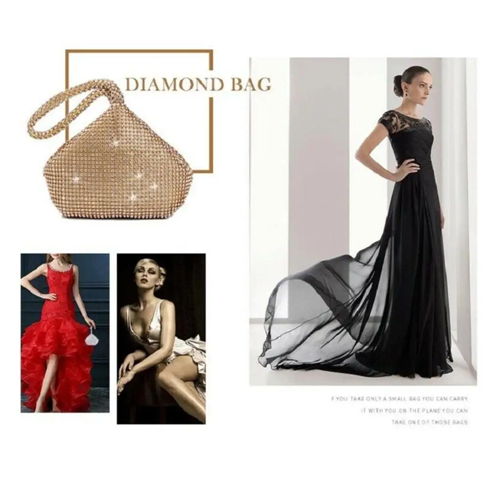 الحجم: كما هو موضح، قابض حفلات السهرة النسائية الفاخر بأحجار الراين الكاملة.