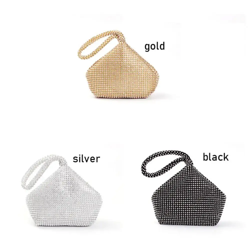 Size: As shown Luxury full rhinestones trihedral women evening party clutch.