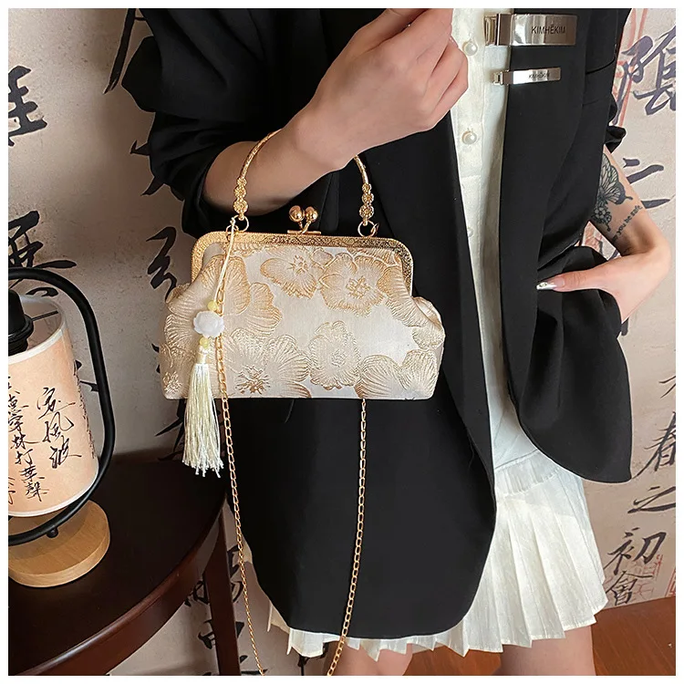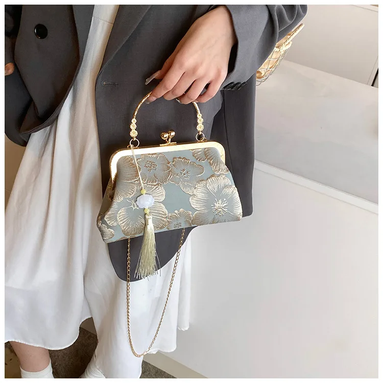 حقيبة يد بحقيبة كتف على شكل سلسلة شيونغسام صينية قديمة مطرزة