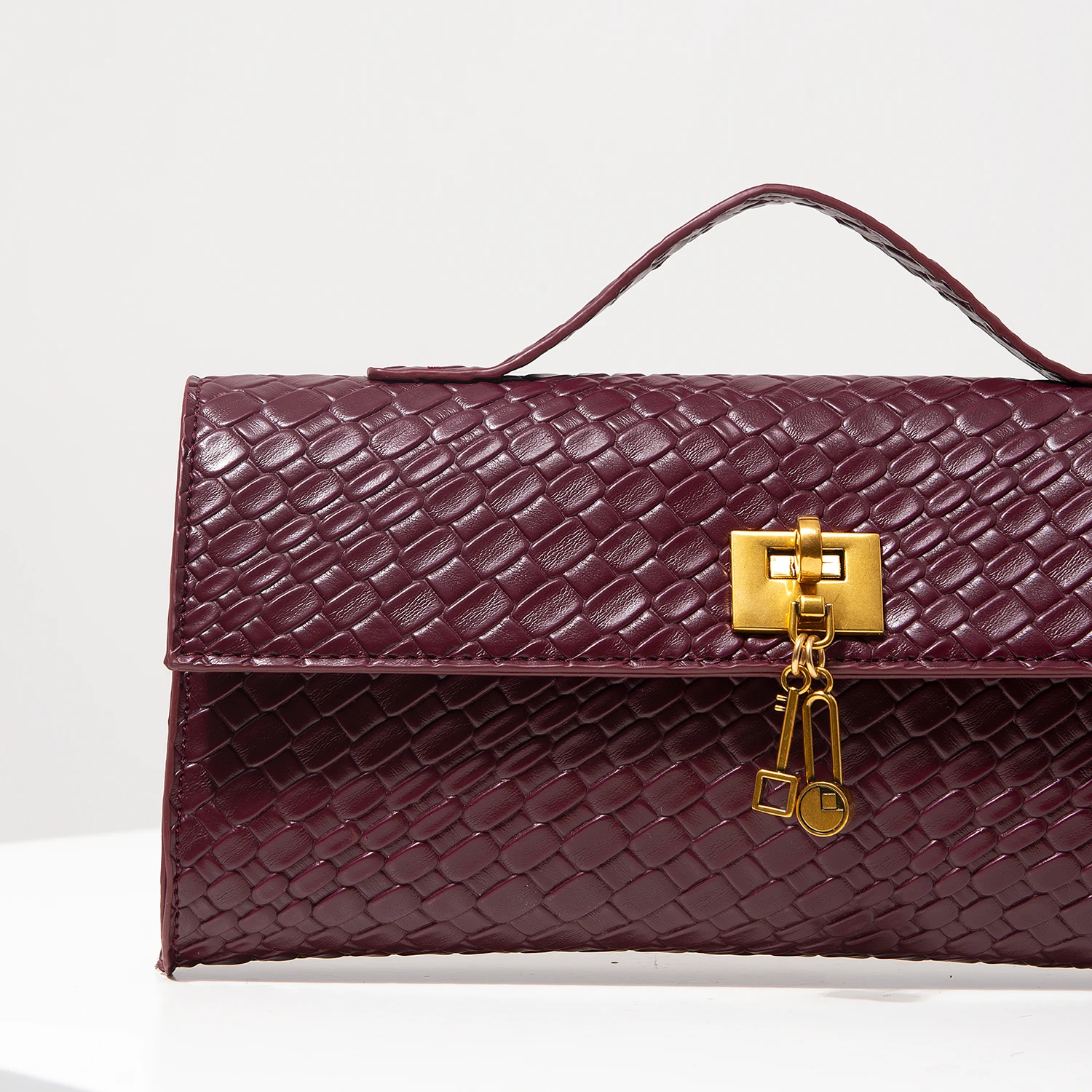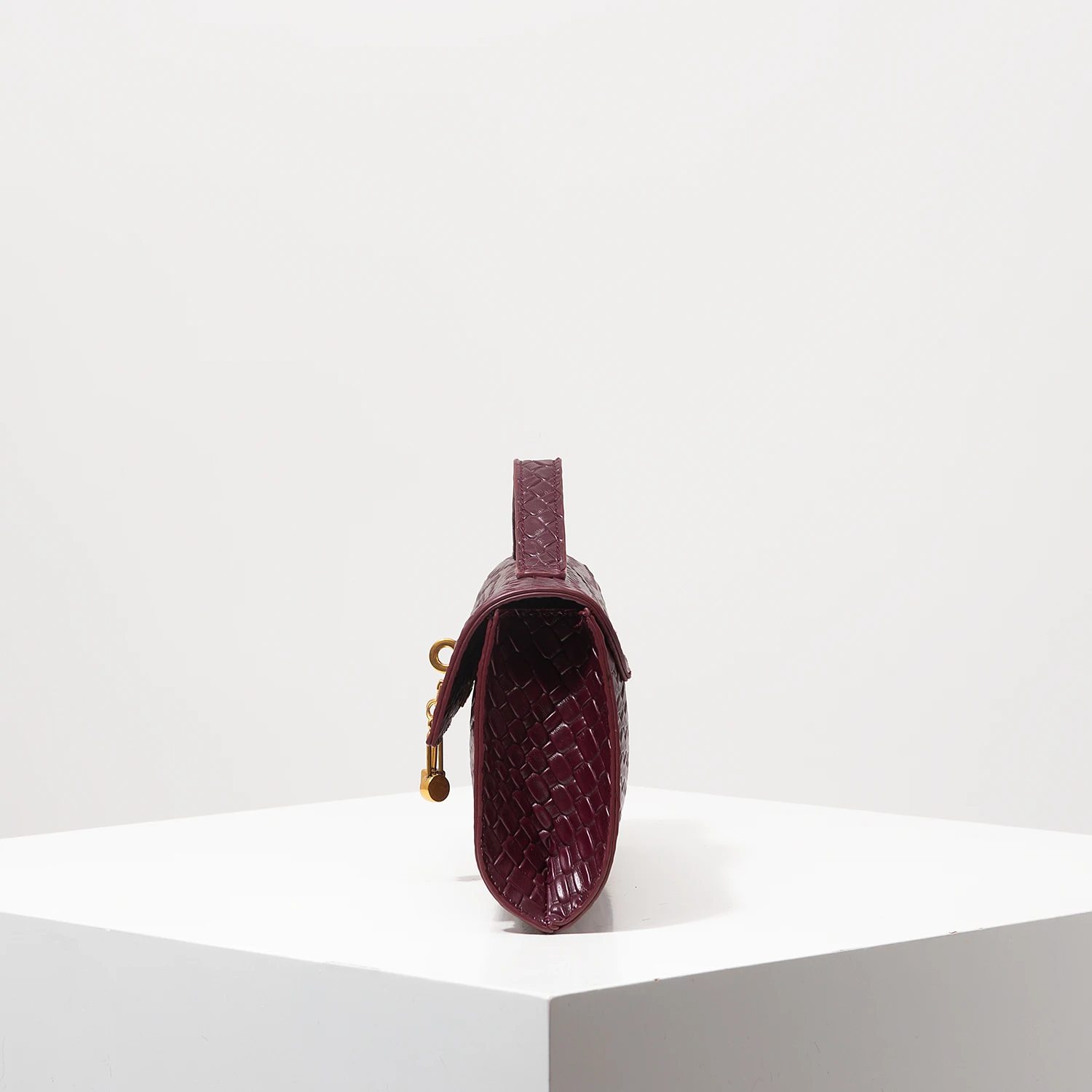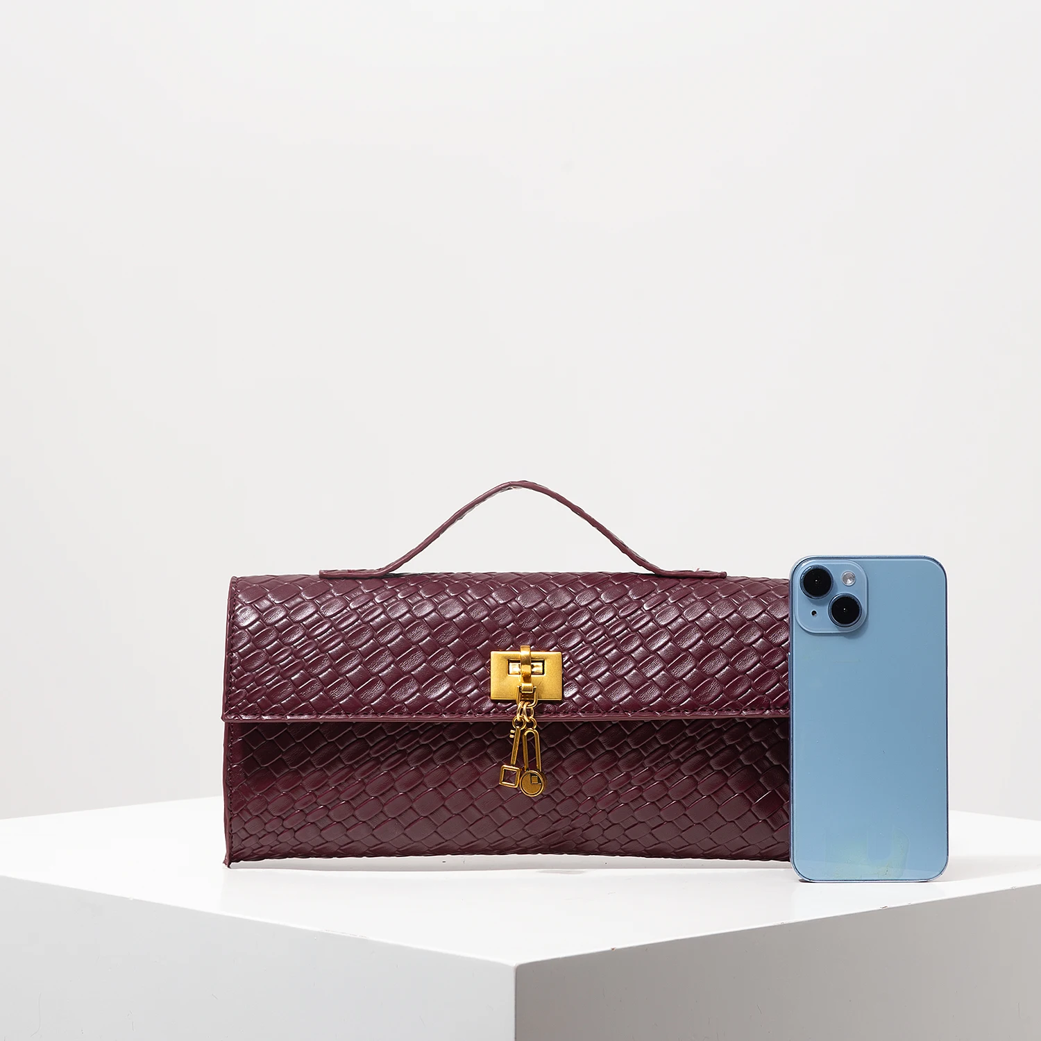 باغيت منسوج من الجلد الصناعي العتيق، حقيبة يد نسائية قابلة للطي، حقيبة سهرة أنيقة، محفظة بورجوندي، حفلة نسائية، عنصر زفاف (نمط عشوائي)