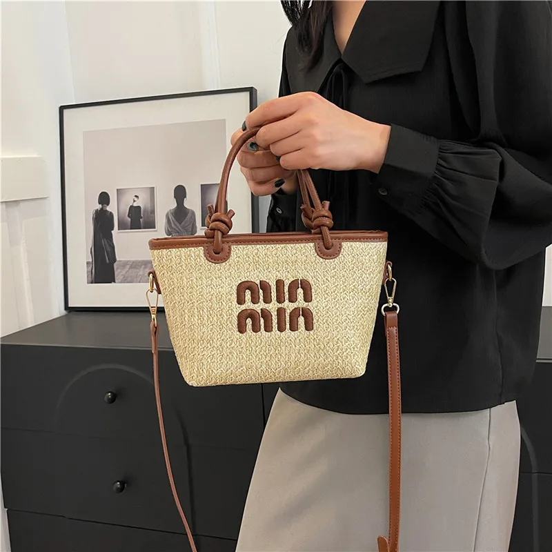 2025 حقيبة القش البوهيمي المرأة العلامة التجارية الفاخرة حقيبة الكتف مصمم محفظة وحقيبة يد لطيف
