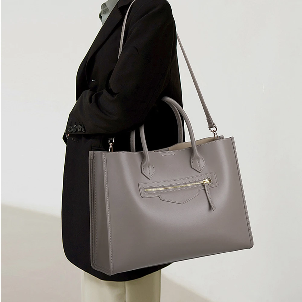 2023 حقيبة نسائية فاخرة أنيقة من جلد البقر للأعمال حقيبة يد محفظة للسيدات موضة A4 حقيبة كتف مصممة للسيدات بسعة كبيرة