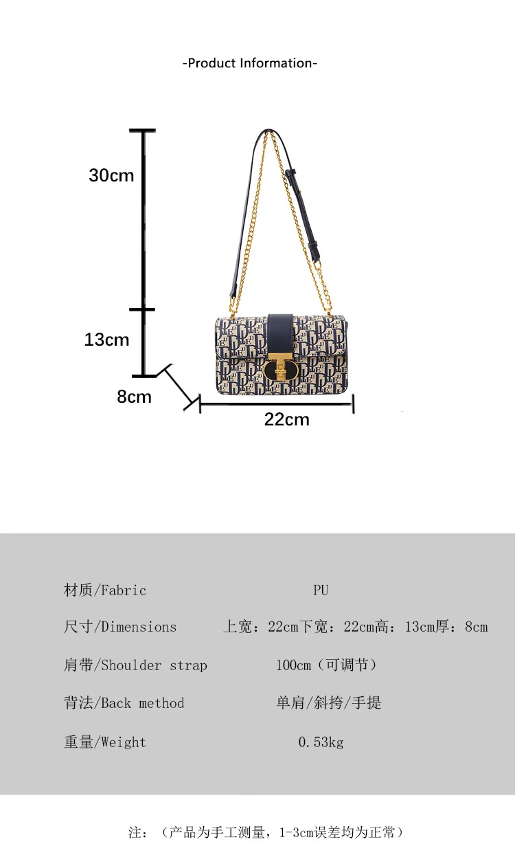 المواد: المادة الخارجية: جلد PU المادة الداخلية: البوليستر الأجهزة المعدنية ذهبية اللون امسح فقط بقطعة قماش مبللة الحجم: 21 سم (عرض) * 13 سم (ارتفاع) ..