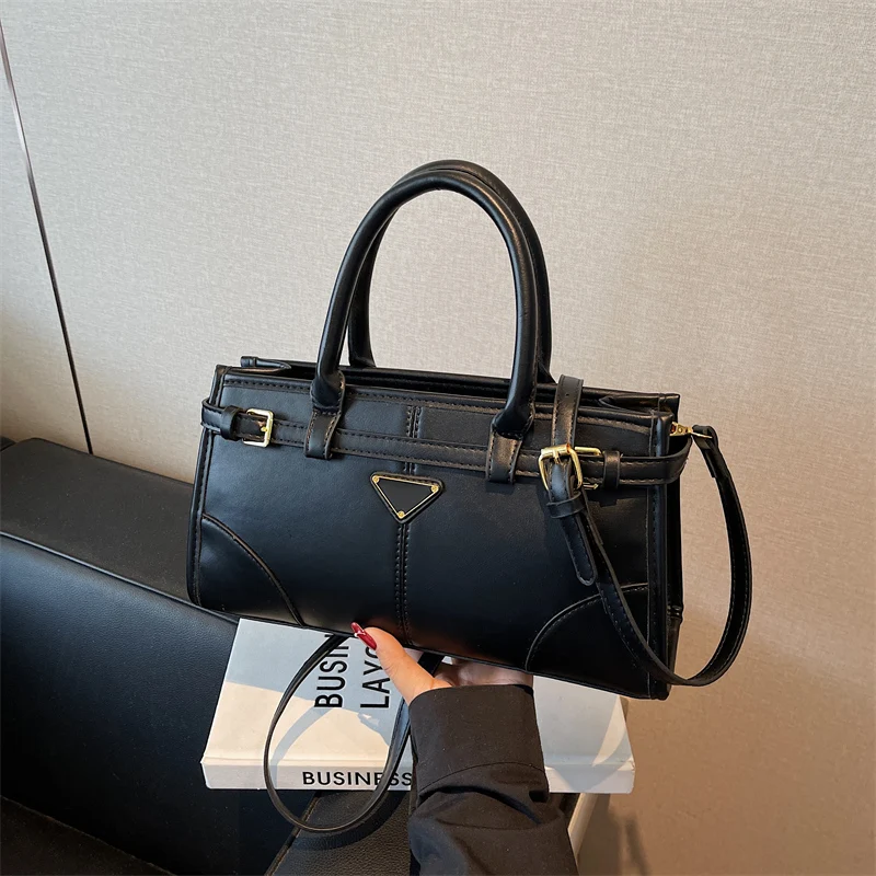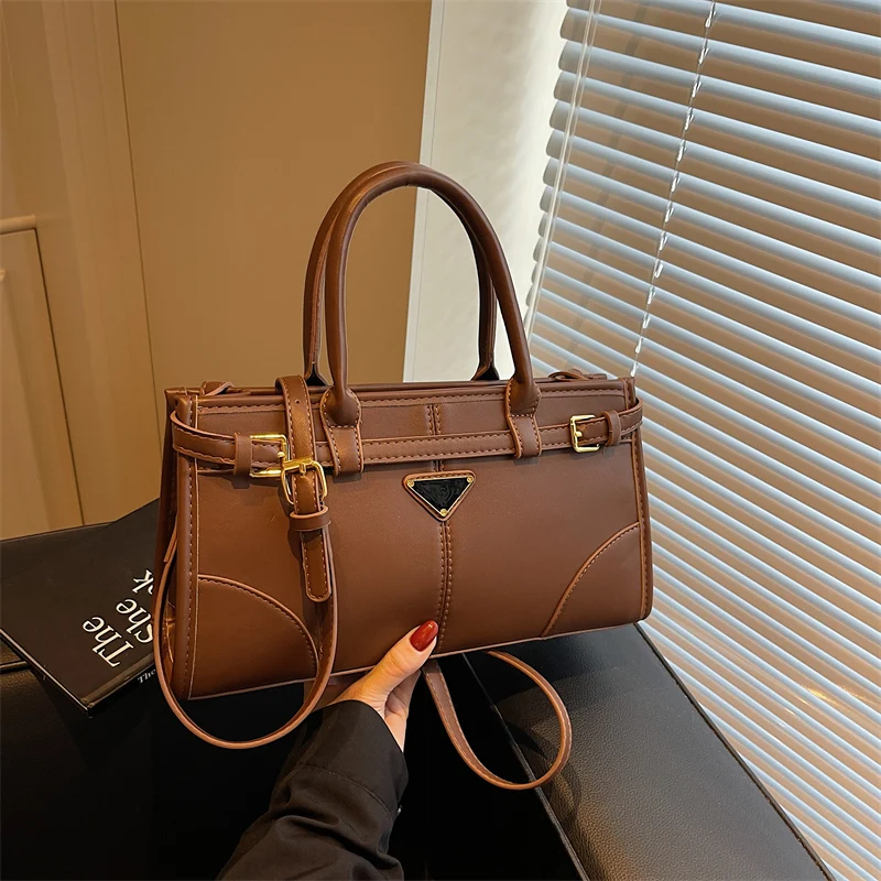 حقيبة كروسبودي حديثة بشعار المثلث بو الجلود، محفظة مبطن سعة كبيرة، إغلاق سحاب، حزام قابل للتعديل للنساء التنقل اليومي