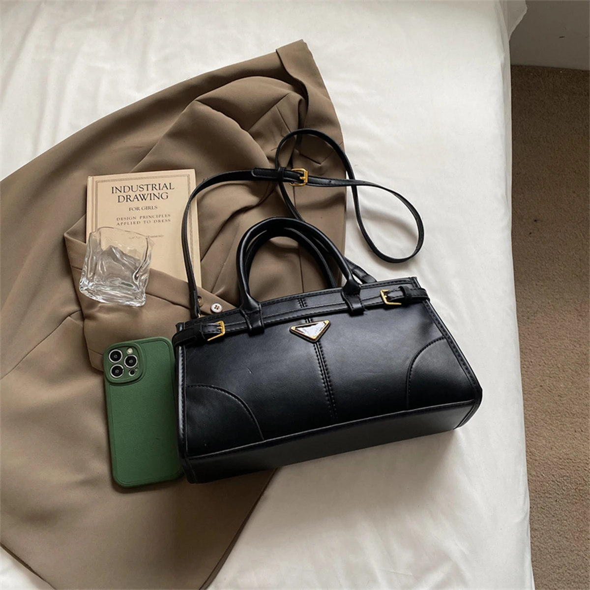 1 تصميم أنيق لطباعة الحروف - جمالية حديثة وبسيطة مع تفاصيل خياطة دقيقة 2 قفل مغناطيسي آمن - إغلاق بمشبك معدني من أجل السلامة والمظهر الأنيق 3 خيارات ح..