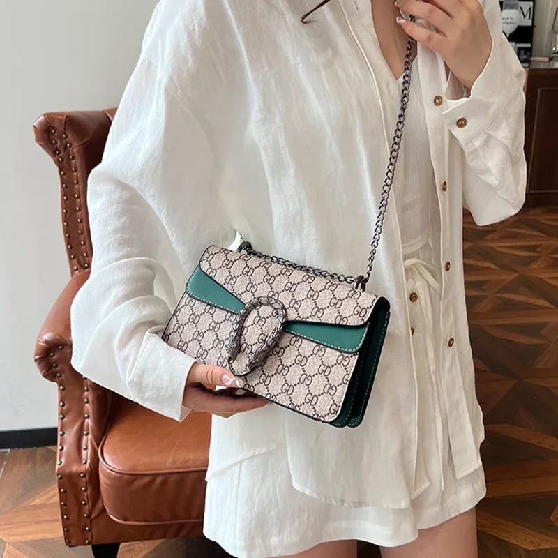 أزياء المرأة رسالة طباعة حقيبة كروسبودي بو سلسلة معدنية حزام المغناطيسي إغلاق دائم قاعدة التسوق اليومي الضروري