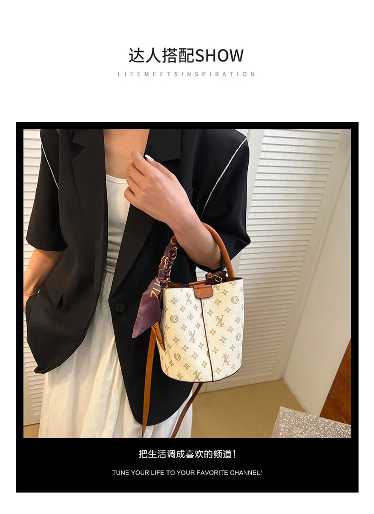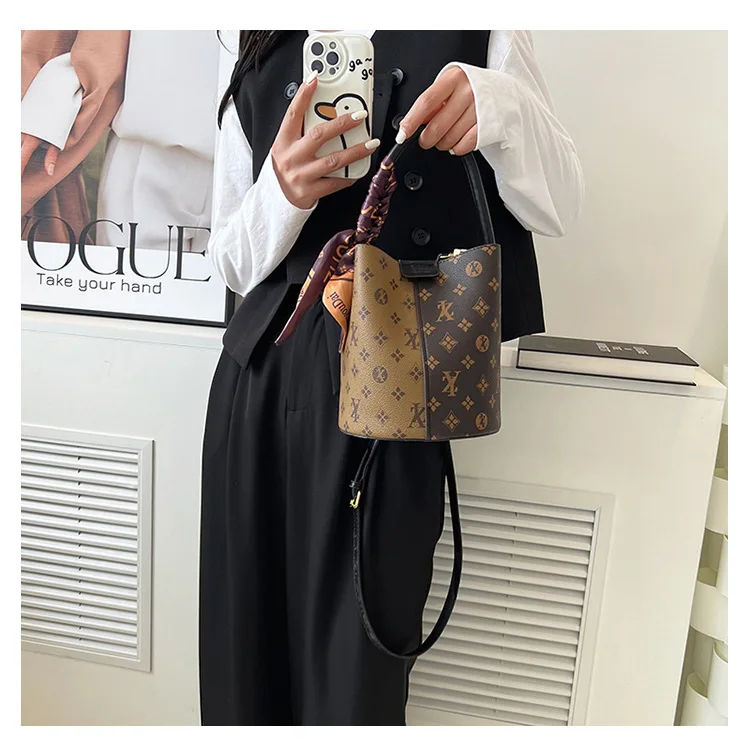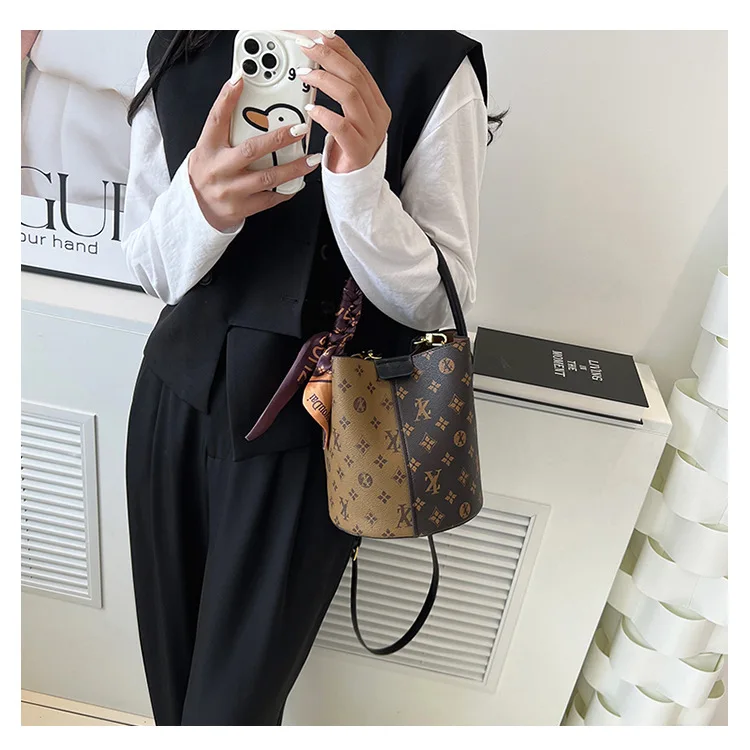 مصمم نسائي جديد فاخر، حقيبة كتف عالية، أزياء، دلو ماء